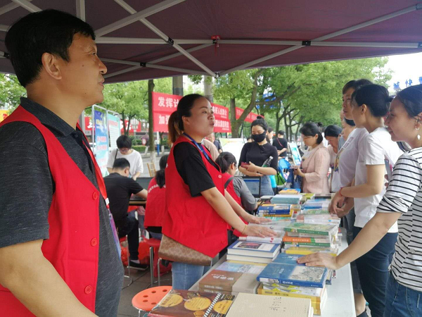 一大早,资阳区图书馆和兄弟单位一起,早早在鹅羊池广场搭设平台,做好了相关准备工作。精心挑选的各类图书有序摆放,还有扫码阅读、新书推荐等这些生活中显而易见的阅读方式吸引了众多市民的目光。活动一开始就得到读者的热烈欢迎,现场气氛热烈,前来咨询和办证的读者络绎不绝,市、区两级文旅广体局领导也到场指导工作。
