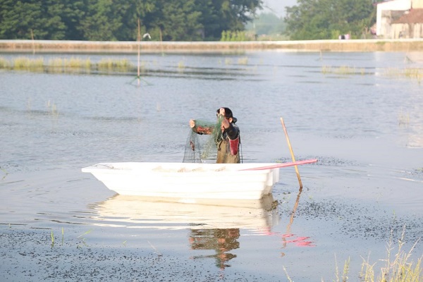 “一片水稻、一沟龙虾、一地两用、一水两养。”在沙头镇文兴村小龙虾养殖基地,连片的稻田和虾塘相互交织,虽然田间忙碌的群众脸上满是汗水,心里却浸润着丰收的喜悦。