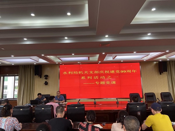 6月28日下午,资阳区水利局特邀中共资阳区委宣传部副部长邹辉为全体干职工讲“红色记忆丰堆仑”专题党课。区水利局局长符建红主持,全体干职工参会。