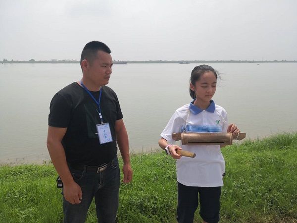 “咚,咚咚。” 7月20日,清脆、响亮的敲梆声在防汛堤巡逻道上响起,在敲梆子的正是初一学生蒋悦。“我们以前防汛,就靠这梆筒子来传达信息,1长2短报平安,连续快出求支援。”在过鹿坪中队巡逻队员邢友维的指导下,她每隔两三分钟就敲一次手中的梆筒子。
