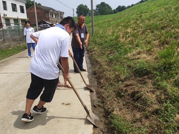 庄科连在教学生们清理堤脚排水沟