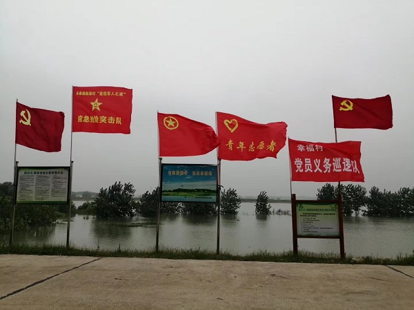 在长春镇一线防汛大堤上有一个独具特色的中队--“党员义务巡堤队”,这个中队是党员全面动员,全员参与防汛的幸福村中队。