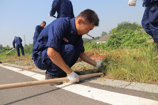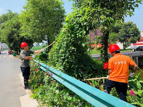 只见他们顶着烈日,有的手握镰刀,砍除沟渠内外两侧杂树、高秆杂草,有的直接用手将杂草一根一根拔掉,还有的拿起扫帚认真清扫每一处垃圾,一时间,四处都是忙碌的身影。“看到这些年纪不大的孩子,顶着太阳抢险,又帮忙搞环境卫生,真是辛苦了。”周边村民心疼地说道,赶忙送上矿泉水给他们解渴。
