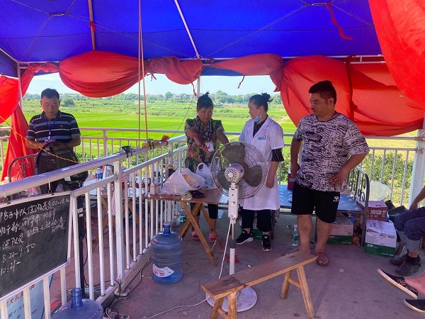 防汛以来,医疗队积极开展医疗服务,宣传防暑知识,增强了防汛人员的防暑避暑意识,为奋战在一线的防汛人员撑起酷暑天气里的一片绿荫。