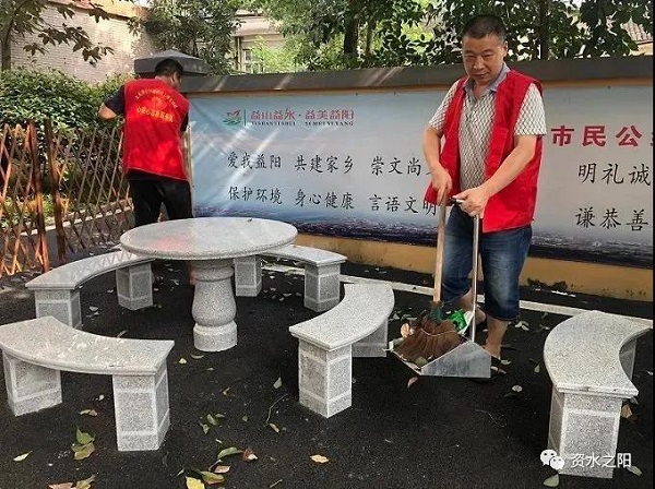 党员志愿者清扫小区卫生