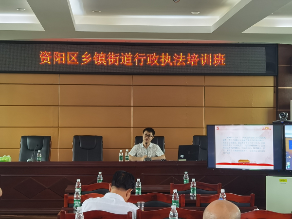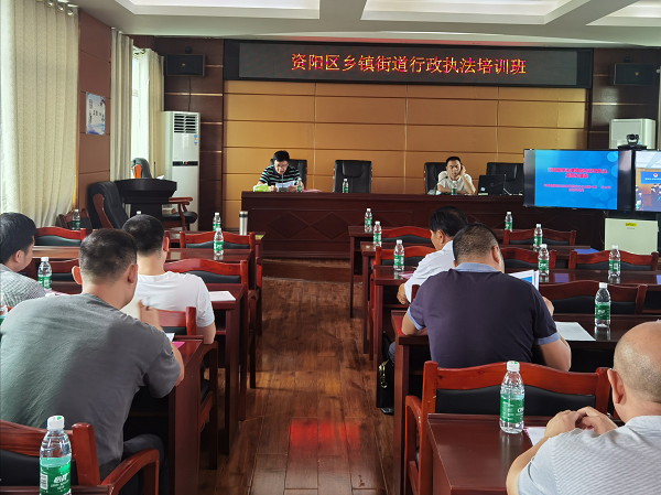 为深入贯彻落实法治政府建设工作要求, 进一步提高全区行政执法人员素质,规范行政执法行为,严格行政办案流程,近日,资阳区司法局组织了资阳区乡镇(街道)行政执法培训班,由副局长符灿辉主持,资阳区各乡镇(街道)的综合行政执法机构执法人员参加了培训。