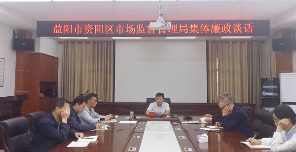 针对市纪委监委第五监督检查室、驻市市场监管局纪检组督查全市食品安全大排查大整治百日行动中发现的基层个别市场监管执法人员执法不廉洁问题,10月13日,资阳区市场监管局组织全局中层骨干以上干部召开集体廉政谈话会。局党组书记蒋利敏作集体廉政提醒谈话,为全体干部职工敲响廉洁自律警钟,进一步拧紧廉政之弦。