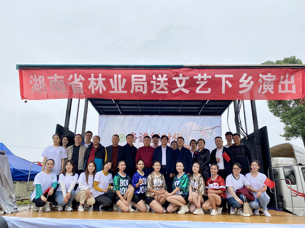 10月17日下午,省林业局宣传中心主任欧日明、工作人员、演职人员一行40人来到资阳区刘家湖国有林场开展“奋进新时代,绿色满潇湘”送文艺下乡活动。益阳市林业局局长刘力威、副局长蔡建辉、资阳区林业局局长钟旭等同志出席了此次活动。