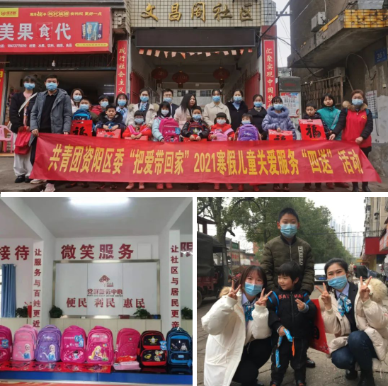 春节临近,为了让社区困难儿童度过一个温暖、幸福、充满爱的春节,1月30日,共青团资阳区委联合农业银行资阳支行团支部开展“情暖童心,冬日有爱”慰问社区困难儿童活动。此次活动走访慰问了新祝社区,文昌阁社区共20名社区儿童,为他们送去了书包、文具等学习用品。