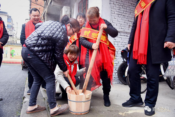 在活动现场,扇子舞、跆拳道等表演轮番上阵,引得台下掌声连连;社区志愿者现场书写春联福字,将新春祝福送给社区困难户和居民。现场表演后,社区还组织了打糍粑活动,现场体验传统年俗,居民们齐心协力,接力捶打,热气腾腾的糍粑让品尝过后的现场群众交口称赞,呈现出欢乐喜庆、和谐文明的新春节日氛围。