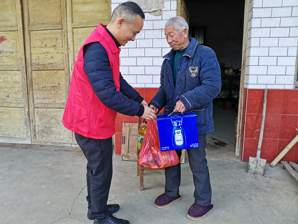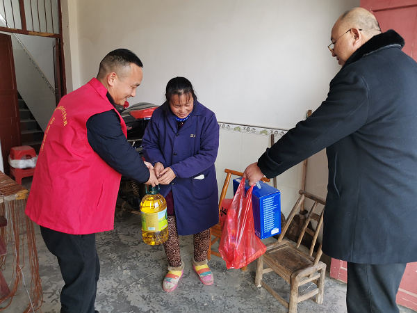 2月1日,春节来临之际,为了让帮扶对象过上一个欢乐祥和的新年,资阳区科技局局长肖佳波同志一行5人深入新桥河镇黄甲山村,为帮扶的8户贫困户送去了食用油、牛奶、红枣、桂圆等慰问物资并致以节日的问候与祝福。
