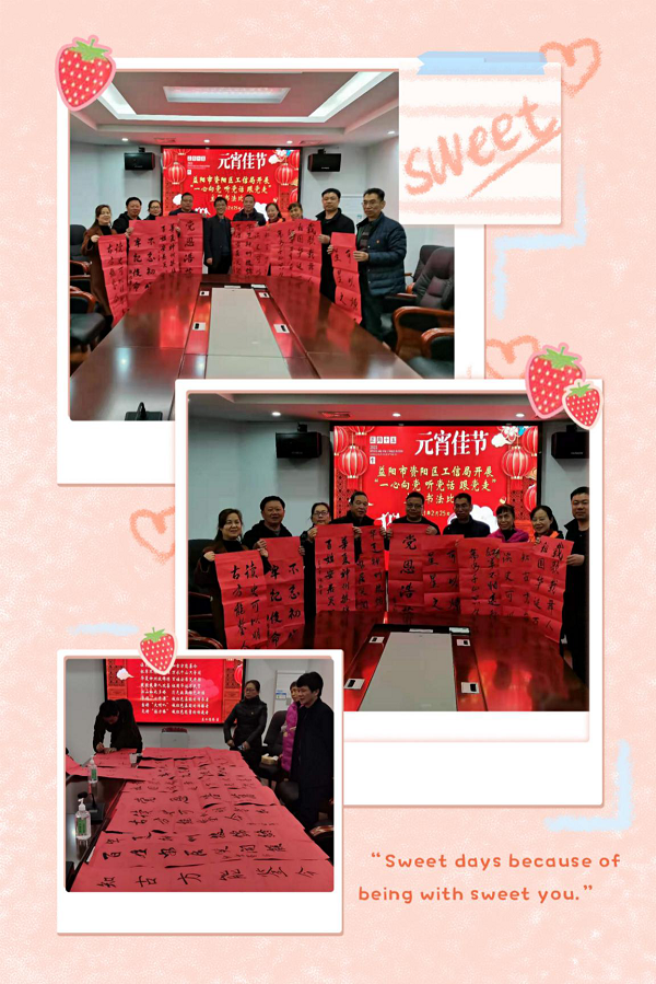 2月25日上午,区工信局组织开展了“一心向党、听党话、跟党走”为主题的书法比赛,共庆牛年元宵佳节,全体干职工和部分退休代表踊跃参与活动,比赛特邀益阳市书法家协会会员、益阳市青年书法家协会理事、益阳市硬笔书法家协会副主席杨晓林现场指导并献字助兴。