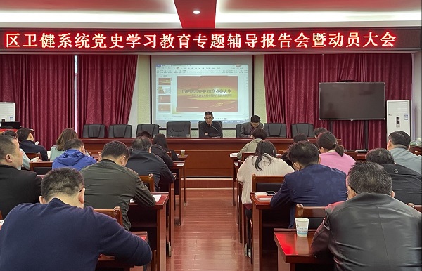 3月31日下午,资阳区卫健系统召开党史学习教育动员暨专题辅导报告会。党委书记、局长刘斌出席会议并作动员讲话,党委委员、计生协会常务副会长钟友胜主持会议。