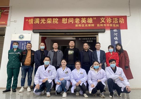 4月14日上午,资阳区卫生健康局联合资阳区退役军人事务局和新河桥镇人民政府,组织益阳市中医医院在新桥河镇虎行山社区开展“学党史•为民办实事,情满光荣院 慰问老英雄——中医中药资阳健康行”退役军人专场义诊活动。为新桥河镇退役军人进行免费体检、健康咨询等服务,现场约100多名退役军人、军属参加。资阳区卫健局、资阳区退役军人事务局、资阳区光荣院以及市中医医院相关领导出席义诊活动。