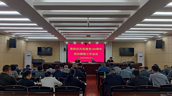 近日,资阳区召开全区庆祝建党100周年信访维稳工作会议。会议由副区长、市公安局资阳分局局长刘洪波主持,区委副书记曾文谦,区委常委、政法委书记谢可赞出席会议并讲话,全区各乡镇街道经开区和相关部门单位主要负责人参加。