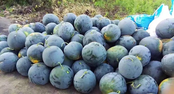 新摘的西瓜堆成“小山”