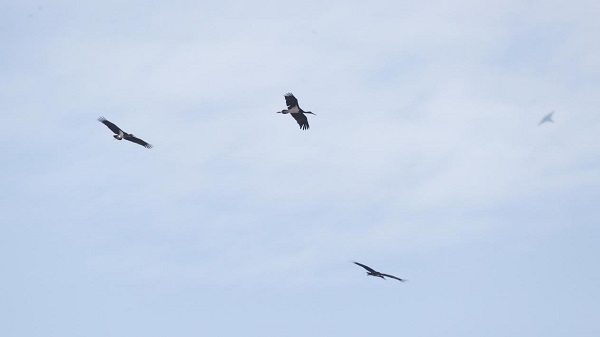 11月24日,南洞庭湖资阳区管理局邀请“洞庭护鸟斗士”李剑志一起开展鸟类监测,在宝塔湖发现国家一级保护动物,“鸟类的大熊猫”黑鹳5只。