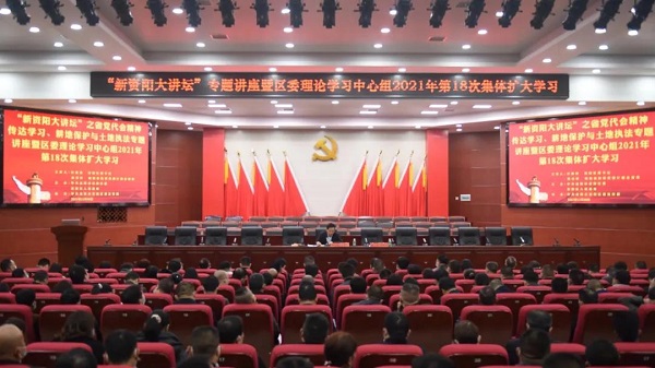 11月30日,资阳区举办“新资阳大讲堂”之耕地保护与土地执法专题讲座暨区委理论学习中心组2021年第18次集体学习(扩大),省自然资源厅党组成员、副总督察林目轩作了题为“耕地保护与土地执法”的专题讲座。区委书记付振南出席讲座,区委副书记曾波主持讲座。