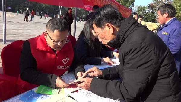 向过往群众普及宪法知识、解答法律问题