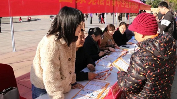 向过往群众发放宣传手册