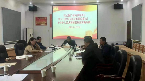 近日,区文旅广体局召开领导班子会议,专题学习了《中华人民共和国监察法》和《中华人民共和国监察法实施条例》,驻区委宣传部纪检监察组组长李秋中列席会议。