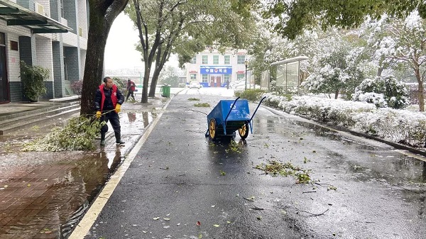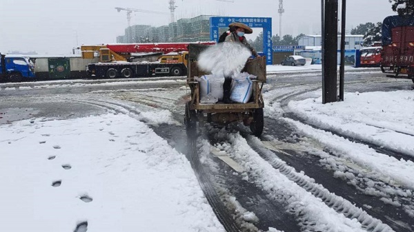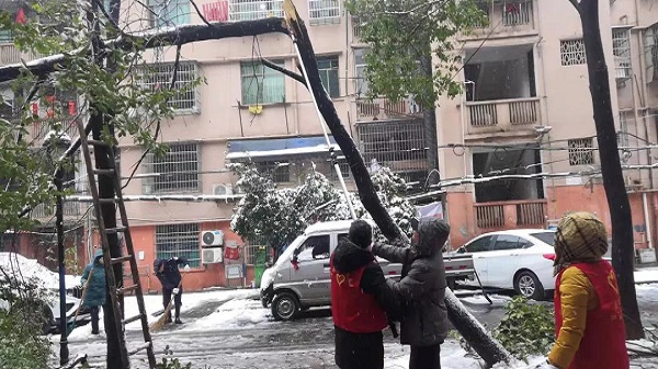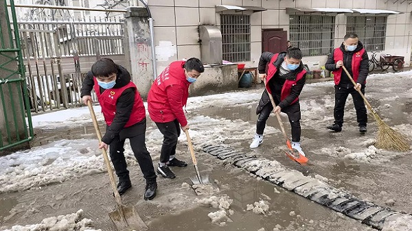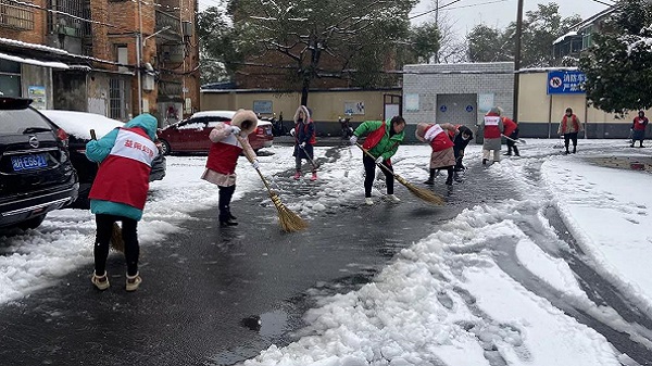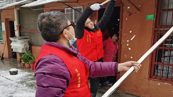 区畜牧水产事务中心志愿者在贺家桥社区扫雪除冰