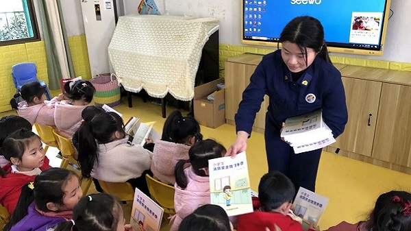 在幼儿园,结合学前儿童年龄小、好奇心强、安全意识较弱的特点,消防宣传员借助真实的案例有针对性地给小朋友们讲解火灾的危害以及有关火灾预防、火灾扑救、拨打报警电话、消防器具使用、火场逃生等方面的知识,带孩子们认识灭火器、应急照明等、疏散指示标志等基本消防器材,并通过你问我答的方式一一解答大家的疑问。在中小学,通过发放《消防安全教育手册》,集中收看湖南卫视《勇往直前的我们》之消防安全“开学第一课”等方式,以学校和班级为单位,组织开展消防安全培训和疏散演练,让学生们零距离感受消防、参与消防,学习消防安全知识。