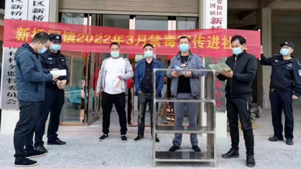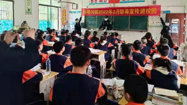 为更好普及毒品预防知识,增强群众和中小学生的识毒、防毒、拒毒意识,营造平安和谐校园环境。近日,新桥河镇禁毒办、新桥河禁毒协会、新桥河派出所组成联合小组,通过悬挂横幅、发放宣传资料,现场讲座等多种形式,在辖区内中小学校园、村(社区)、集镇开展禁毒宣传。