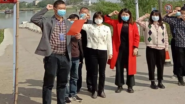“我志愿加入中国共产党……随时准备为党和人民牺牲一切,永不叛党。”4月2日,茈湖口镇奋战在茈赛渡口的全体党员举起右手,面向党旗,铿锵有力地诵出铮铮誓言。