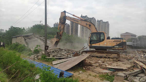拆除金花湖东路北侧白马山社区金盆山组违法建设
