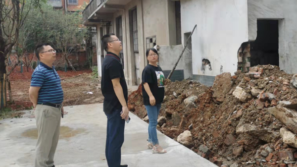 资阳区副区长肖友良一行到汽车路街道人民路社区督导“口袋公园”项目建设及自建房、老旧危房安全隐患情况。区城管执法局党组书记、局长邹晖陪同参加。