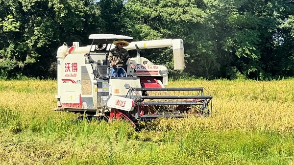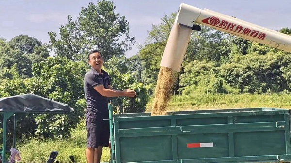 官楼坪村种粮大户尹正群正在收割稻谷