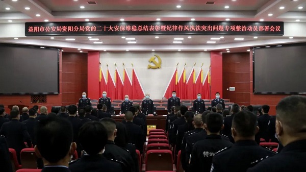 会议传达学习了党的二十大精神,对先进集体和个人进行了表彰,解读了《益阳市公安局资阳分局纪律作风暨执法突出问题专项整治方案》《益阳市公安局资阳分局强化社会面防控管理体系实施方案》及《益阳市公安局关于部分案件审批工作的规定》等有关执法规范化建设文件,通报点评了绩效考核情况,部分单位和个人代表作了表态发言。