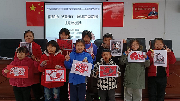 一方红纸,一刀一剪,剪出了大家对民族文化的兴趣,更剪出了大家对“扫黄打非”、营造“文化晴空”的决心。茈湖口镇党委委员、副镇长刘绚说:“要想让活动效果好,还得站在孩子们的角度去思考问题。因此,我们集思广益,选择了将“非遗”剪纸文化和“扫黄打非”教育结合在一起,在宣传普及“扫黄打非”知识的同时,又让大家感受到传统文化的趣味性,‘融’出‘扫黄打非’工作新格局。”