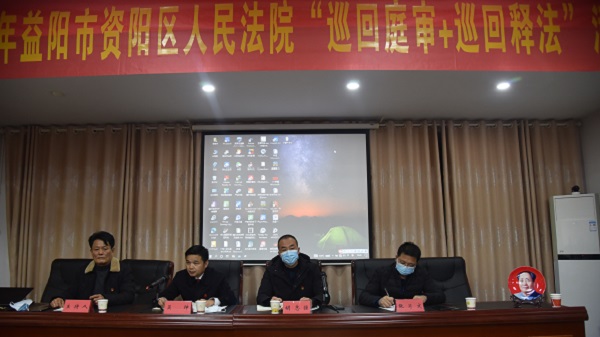 近日,资阳区人民法院“巡回庭审+巡回释法”活动在茈湖口镇祁青村正式拉开帷幕。茈湖口镇党委相关负责人出席活动并作讲话,祁青村村委干部和村民代表60余人参加活动。