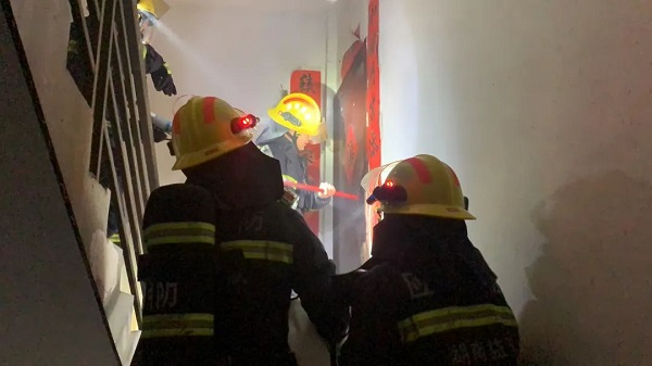 1月2日1时5分,益阳市119指挥中心接到报警称,位于资阳区老妇幼保健院对面一居民房起火,由于是邻居报警,不清楚屋内是否有人员被困。资阳消防救援大队接到报警后,立即赶赴现场救援。