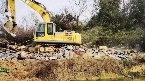 拆除重点项目区违建砖混杂屋前后