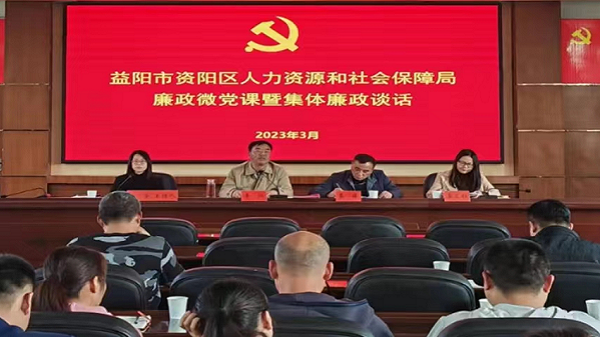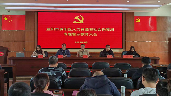 3月份以来,资阳区人社局以纪委监委部门通报的身边案例为负面教材,以案促教、以案促改、以案促治,开展了为期一个月的专题警示教育活动。他们对标落实全区专题警示教育工作方案“规定动作”的基础上,同步创新教育方式,以“九个一”活动为载体,筑牢党员干部拒腐防变思想防线。