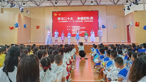 活动在嘹亮的歌声中拉开帷幕,全场齐唱中国少先队队歌《我们是共产主义接班人》,表达队员们对少先队组织的向往和热爱,唱响了为着理想勇敢前进的信念。来自益阳市红领巾巡讲团的谭紫英、傅红两位老师进行了示范宣讲,通过师生互动宣讲的形式,在“童言童语”的交流中,围绕“立志向”的话题,学习领会习近平总书记给予少年儿童的希望要求,引领广大少年儿童从小热爱党、热爱祖国、热爱家乡,以实际行动接过时代的接力棒,努力践行“请党放心 强国有我”的青春誓言。