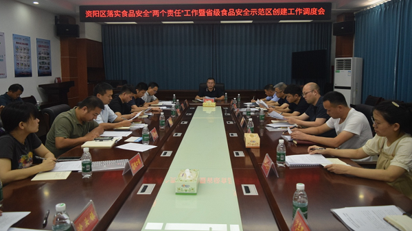 近日,资阳区落实食品安全“两个责任”工作暨省级食品安全示范区创建工作调度会议召开。区食安委副主任、副区长肖友良出席会议并讲话。全区各乡镇、街道(经开区)及区食安委成员单位相关负责人,区食安办全体人员等参加会议。