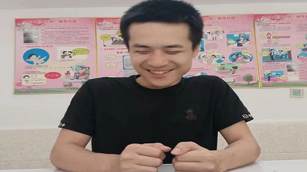 (图为资阳区长春镇柽林村的熊大秀(新生儿熊沐宸的父亲)掩饰不住喜悦)