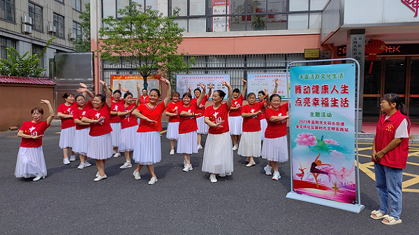 为加强社区文化阵地建设,丰富社区居民的业余文化生活,倡导健康生活理念,增强身体素质,8月2日,金花坪新时代文明实践站开展“舞动健康人生,点亮幸福生活”主题活动。