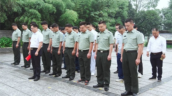 早上9点,全体官兵在益阳丰堆仑革命旧址广场肃立。细雨中,大家向在中国人民抗日战争中英勇牺牲的烈士默哀致敬,并依次为本土革命烈士墓碑敬献鲜花。