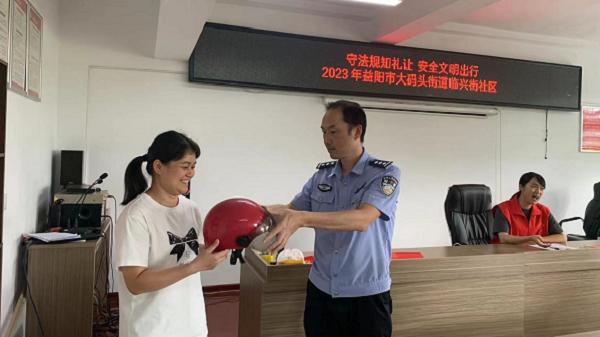 民警现场还为居民展示正确的佩戴头盔方式,宣传“一盔一带”的重要性,发放交通安全宣传单、知识手册,告知大家一定要时时谨记交通规则,自觉抵制不文明、不安全的交通行为。
