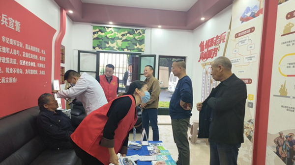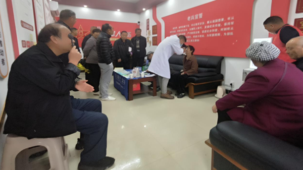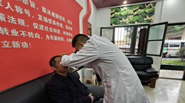 义诊活动现场,前来看诊的大多数是峥嵘岁月保家卫国的参战退役老兵,眼科医生本着“早发现、早诊断、早治疗”的原则,运用专业的眼科检查仪器,细致地查看大家的眼部情况,详细询问其身体状况、既往病史等。关切地为大家进行眼科健康知识的宣教科普,包括如何在日常生活中健康用眼护眼、防治防控知识等内容。提出合理的治疗建议与健康指导,同时医护人员还为慢性病患者免费测量血压、血糖等.为他们现场直接答疑解惑,舒缓他们紧张担忧的情绪。