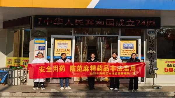 “您好,您知道吗?滥用麻精药品会产生强烈的依赖性,等同于吸毒。” 近日,资阳区市场监管局志愿者向群众宣传有关禁毒防艾知识。