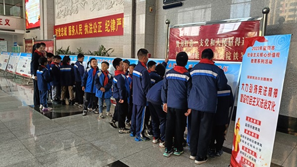 为进一步增强青少年的法治观念,弘扬宪法精神,引导青少年学习宪法、尊崇宪法,近日,资阳区法院开展“青少年宪法宣传日”活动,邀请益阳市石码头小学30余名师生走进法院,了解法院工作内容及干警工作职责。