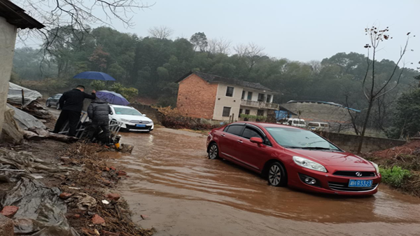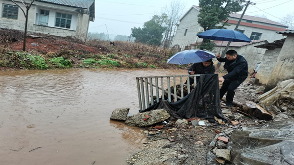1月2日,大雨倾盆,黄花仑村粉铺组乡村道路下水道由于被杂物堵塞,排水不畅,造成路上严重积水。黄花仑村党总支书记方向明接到组长上报的情况后,第一时间赶到现场,组织带领“两委”干部,冒雨疏通下水道。党员干部沿着道路两侧用撬棍打开井篦,仔细观察下水道堵塞情况,用手掏出里面的淤泥、垃圾等沉积物,经过一个多小时奋战,将下水管道全部疏通,排除了积水。