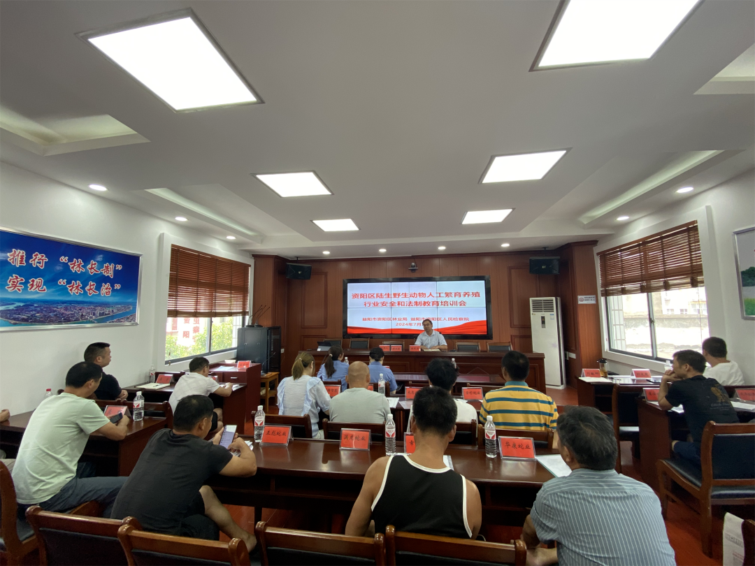 为进一步有效保护资阳区珍贵野生动物资源,规范资阳区陆生野生动物人工繁育和经营利用管理,提升陆生野生动物行业安全和法制教育水平。7月26日,区林业局与区人民检察院联合举办了2024年度资阳区陆生野生动物人工繁育养殖行业安全和法制教育培训会。