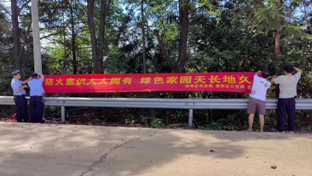 “群策群防,森林防火有力量。严查严管,森林安全有保障”。近日,在资阳区重点防火林区,数十条森林防火宣传横幅悬挂在进山道路显眼处。